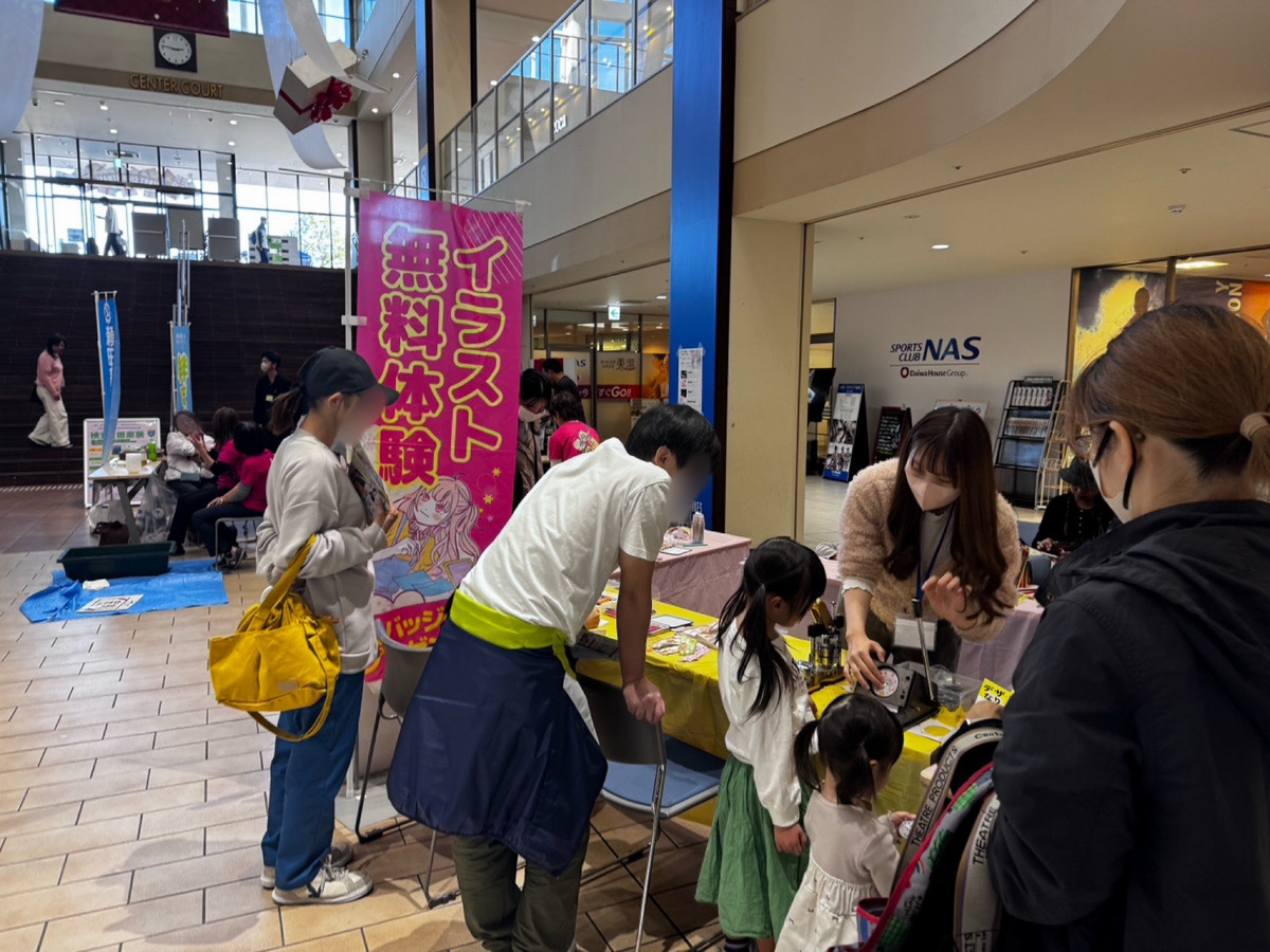 瀬田商工会が主催する地域イベント「絆まつり」イラストレーターさんとイラストを描いて缶バッジ作成するブースを出展しました。